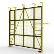 Ladegabel für Glasgrößen bis 6.000 x 3.210 mit insgesamt 6 Halteklauen zum sicheren Halt der Bandmaßtafeln, 4- teiligem Schutzgitter, optional* verstellbaren unteren Aufnahmefüßen, beidseitigen Trittsprossen und 2-Punkt-Kranaufnahme.