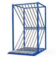 FGL vertical shelf storage for single windows, doors and elements - wooden plate and OSB sheets - storage bay optional with a second shelf board or slide roles |