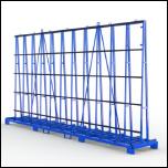 FGL Elemente- und Fenstertransportgestll " TYP AT " eine Seite mit horizontalen gummierten Anlagen (ohne Anlagenneigung)und eine Seite mit senkrechten gummierten Anlagen (Anlagen-Neigung 4), aus gerüstet mit Unterlochraster- und Gurtösen für den Einsatz von Gurtspannlatten, Stapler- und Hubwagenfähig, Kranbar.