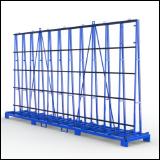 Fenster- und Elementetransportgestell zur beidseitigen Beladung., als Kombigestell mit einer senkrechten und einer geneigten Anlagenseite. |