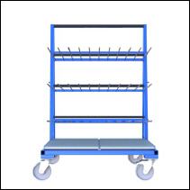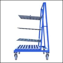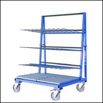 Rahmenzuschnittwagen mit 12 Einstellplätzen, 4° Grad geneigt.