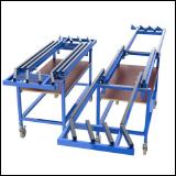 Für den internen Transport und die Bearbeitung von Rahmenelementen. Mit verstell- und auswechselbaren Rollenführungen an den Auflagen. |