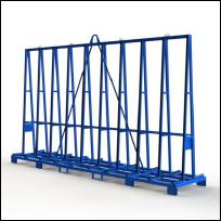 Glastransportgestell für beidseitige Beladung mit Staplerfüßen- und Staplersicherungen, Außenkranoesen, Lochraster, vorgesehen für die Befestigung von Gurtspannlatten in verzinkter Ausführung.