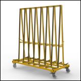 Glastransport- und Kommissionswagen für einseitige Beladung in lackierter Ausführung mit gummierten An- und Auflagen für den internen Einsatz mit je 4 Polyamidrollen. |