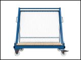 Weiterhin sind die Gläser bei den FGL- Scheibensortierwagen durch die Anordnung von Fachstangen und Röllchenachsen zueinander beim Einführen in die einzelnen Fächer vor Zusammenstoßen geschützt, wodurch Kratzer vermieden werden.