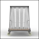Weiterhin sind die Gläser bei den FGL- Scheibensortierwagen durch die Anordnung von Fachstangen und Röllchenachsen zueinander beim Einführen in die einzelnen Fächer vor Zusammenstoßen geschützt, wodurch Kratzer vermieden werden.