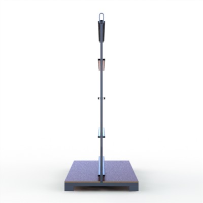 Elemente-Transportgestell Typ T (T-Gestell), zur beidseitigen Beladung mit senkrechter, gummierter Rückenanlage und durchgehenden Holzauflagen, staplerfähig und kranbar.