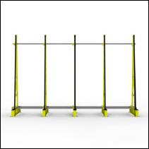 FGL Floatglas-Lagergestell zur beidseitigen Beladung mit je 5 Anlagebinder und einer Anlagenneigung von 5°, vorgesehen zur Verschraubung auf vorhandenem Untergrund.
